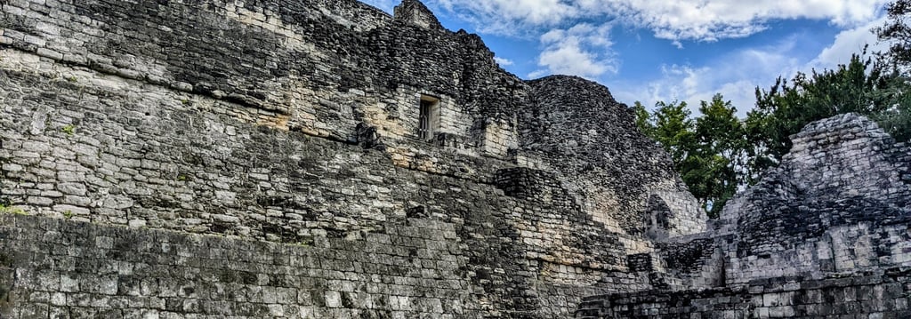 Chacchoben (≈45 minutes): Easily accessible from Bacalar, with well-preserved temples and pyramids such as the Gran Basamento, set amid dense vegetation.